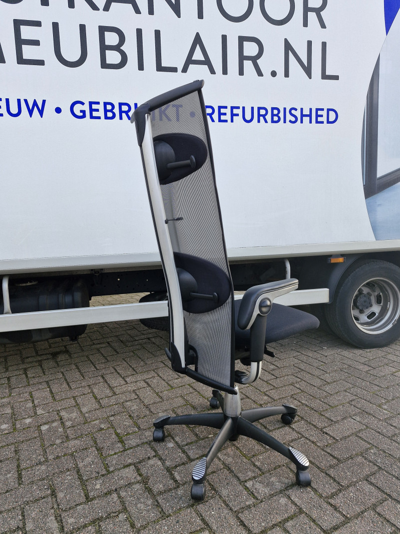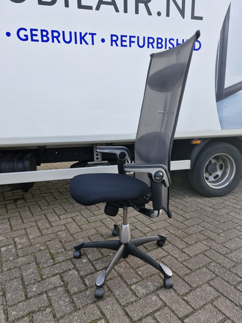 HÅG H09 Inspiration is een modern meubelstuk dat een aangename zakenpartner kan worden. HÅG H09 Inspiration heeft een stijlvolle en lichte uitstraling en komt toch bijzonder solide over. Als u gaat zitten, merkt u hoe de transparante bekleding een luchtig comfort en prettige bewegingsvrijheid biedt, terwijl de stoel toch bijzonder solide aandoet. HÅG H09 Inspiration heeft een hoge rugleuning. De stoel is uitgerust met het HÅG BalancedMovement Mechanisme en heeft een verstelbare zithoogte en -diepte. Een verstelbaar lumbaalkussen biedt extra comfort en optimale steun. De schommelweerstand is verstelbaar en vergrendelbaar. HÅG H09 wordt standaard geleverd met multifunctionele TiltDown™ zwart lederen armleggers die u simpel wegklapt als u ze niet nodig heeft. We hebben een partij, kleine verschillen mogelijk, sommige bijvoorbeeld met en zonder colbert houder.
